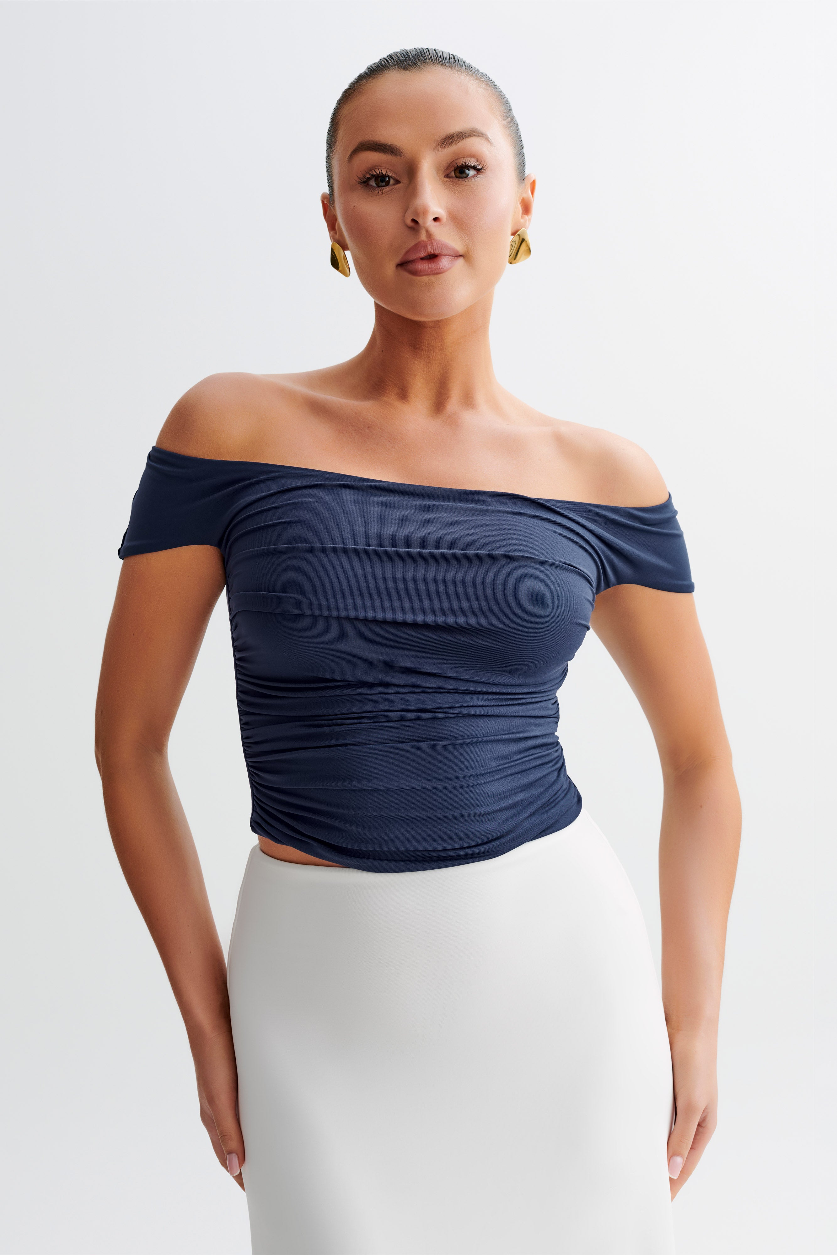 The PIPER Ruched Off Shoulder Top is a chic and versatile addition to your wardrobe. Featuring a flattering Bardot neckline that elegantly frames the shoulders, this top also has stylish short sleeves. The ruched waist design accentuates your silhouette, providing a comfortable and flattering fit. Fully lined for added comfort, this top is perfect for both casual outings and more dressed-up occasions, effortlessly combining style and sophistication.